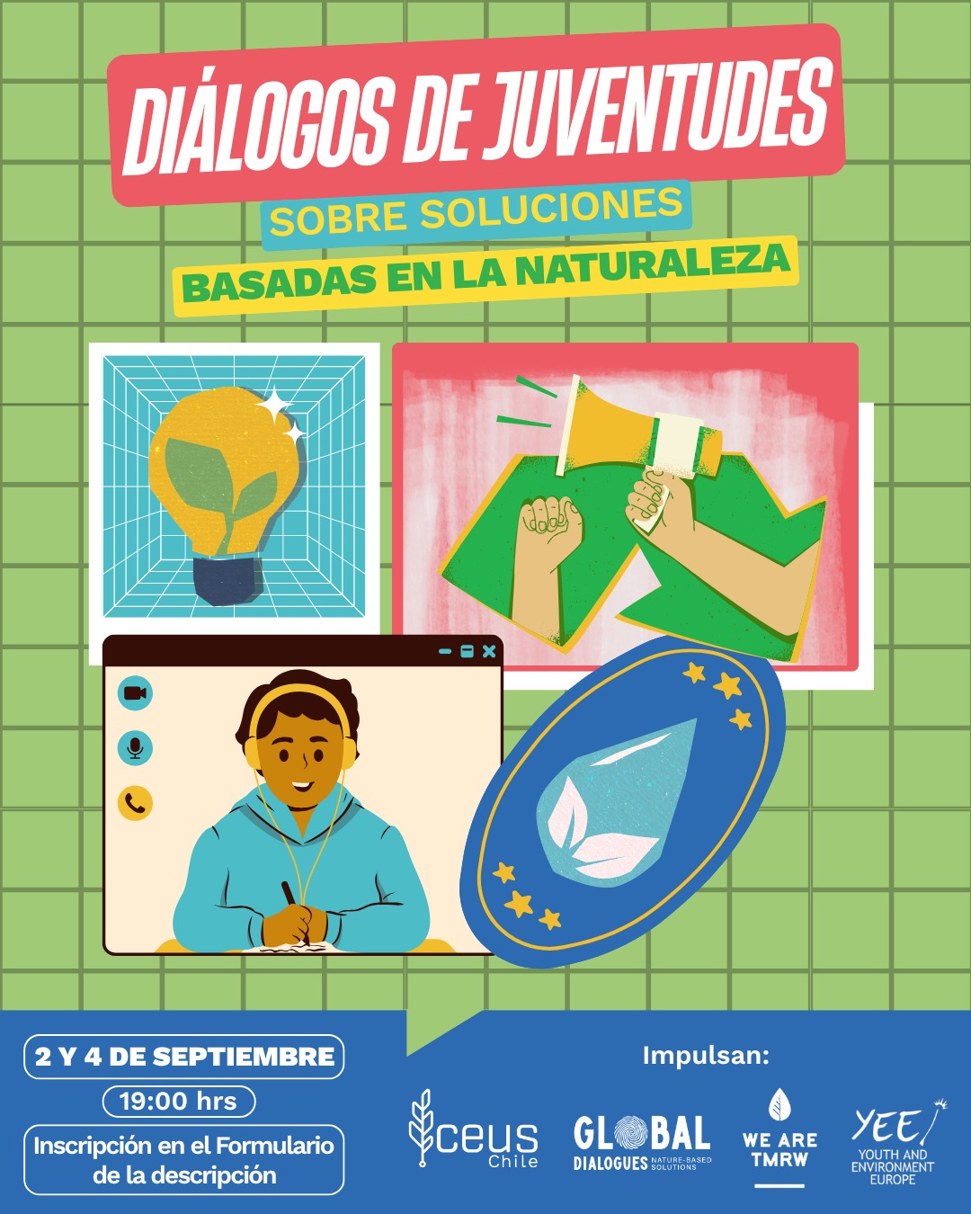 ONG CEUS Chile en el marco del Global Dialogues Project, invita a jóvenes entre los 18 a 35 años de Chile a sumarse al proceso participativo “Diálogos de Juventudes sobre Soluciones Basadas en la Naturaleza” con el objetivo de fortalecer el rol de las juventudes en la acción climática desde un enfoque de justicia socioecológica.